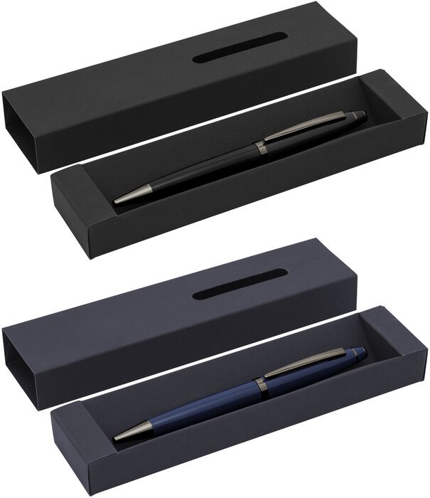 Presentación: en caja de regalo con ventana y acabado engomado del color del bolígrafo.