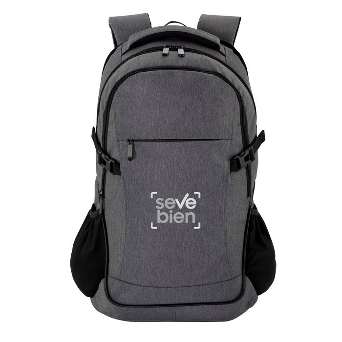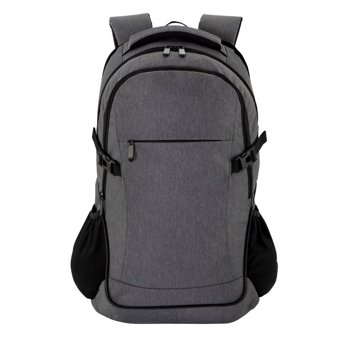 Mochila urbana portanotebook de hasta 16 pulgadas. Compartimento principal con cierre, interior con 2 bolsillos, bolsillo porta notebook acolchado y elástico de seguridad y bolsillo porta tablet de hasta 11 pulgadas. Compartimento frontal con cierre, exterior con cierre horizontal, interior con bolsillos organizadores. 2 bolsillos laterales de tela elastizada color negro. 2 correas de hebillas ajustables al volúmen que se traslade. Asa acolchada y reforzada. Espalda acolchada con red que permite ventilación. Tiradores de cierre metálicos.
