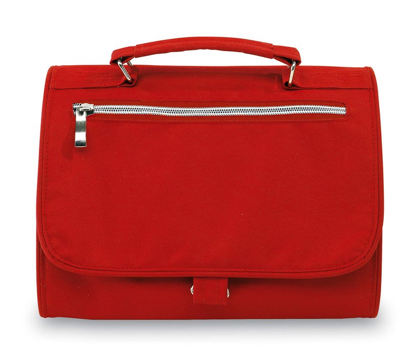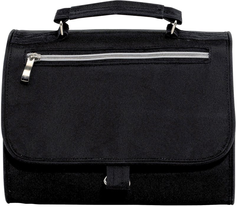 25 x 8 x 18 cm cerrado / 25 x 59 cm abierto. Polyester 600D. Colgante. Con cierre, 3 compartimentos interiores, 1 compartimento exterior en la parte frontal con cierre.