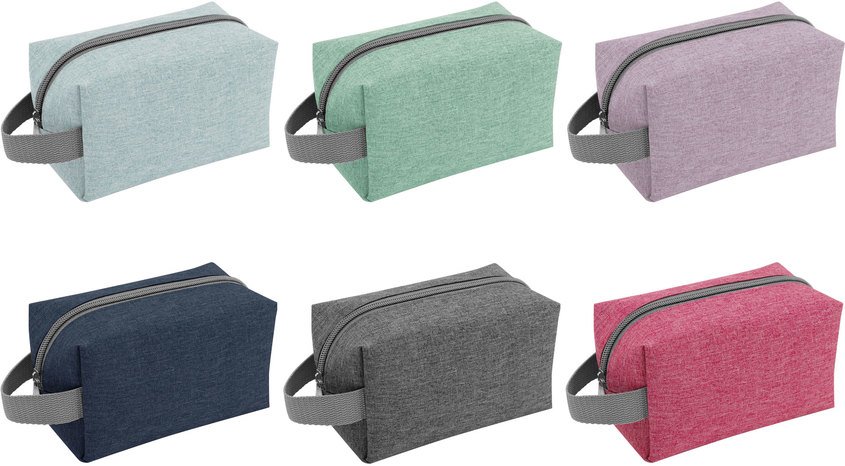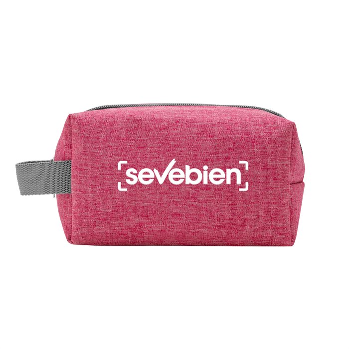 Necessaire con amplio compartimento. Interior forrado en Poliéster 210D. Cierre con tirador metálico y asa lateral en tela de color gris.