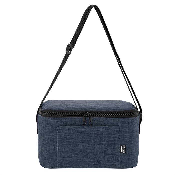 Bolso térmico. Cierre superior bidireccional. Correa regulable con hebillas plásticas. Bolsillo frontal. Capacidad ideal para transportar hasta 6 latas.